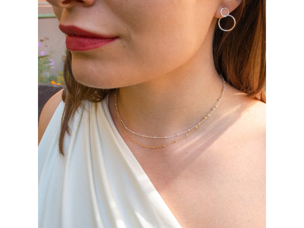 Řetízek PRO SÉGRU - jemný náhrdelník s kuličkami Sterlingové / pozlacené stříbro Ag 925/1000
