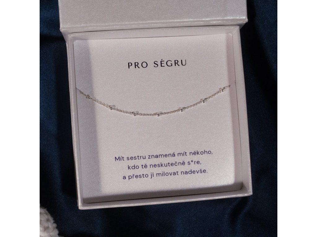 Řetízek ti přijde v elegantní dárkové krabičce s věnováním „pro ségru“, kde ji čeká i ten upřímný text o tom, že tě někdy neskutečně s*re a stejně bys za ni dala ruku do ohně. Stačí jen předat a sledovat, jak se jí rozzáří oči.