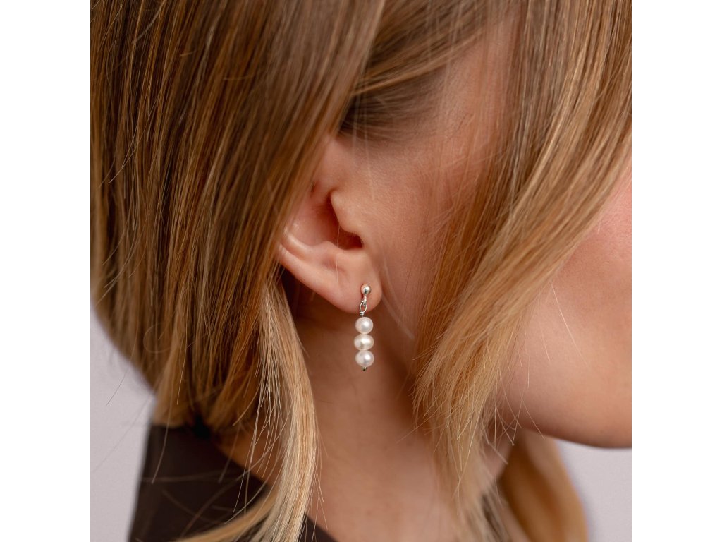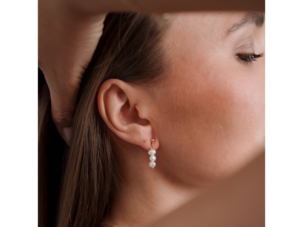 Každou náušnici zdobí tři pravé sladkovodní perly o velikosti 4–5 mm. Trojka je v numerologii spojována s kreativitou, radostí a sebevyjádřením. Připomíná ti, že máš moc tvořit svůj život podle sebe a se záměrem si ho utvářet.