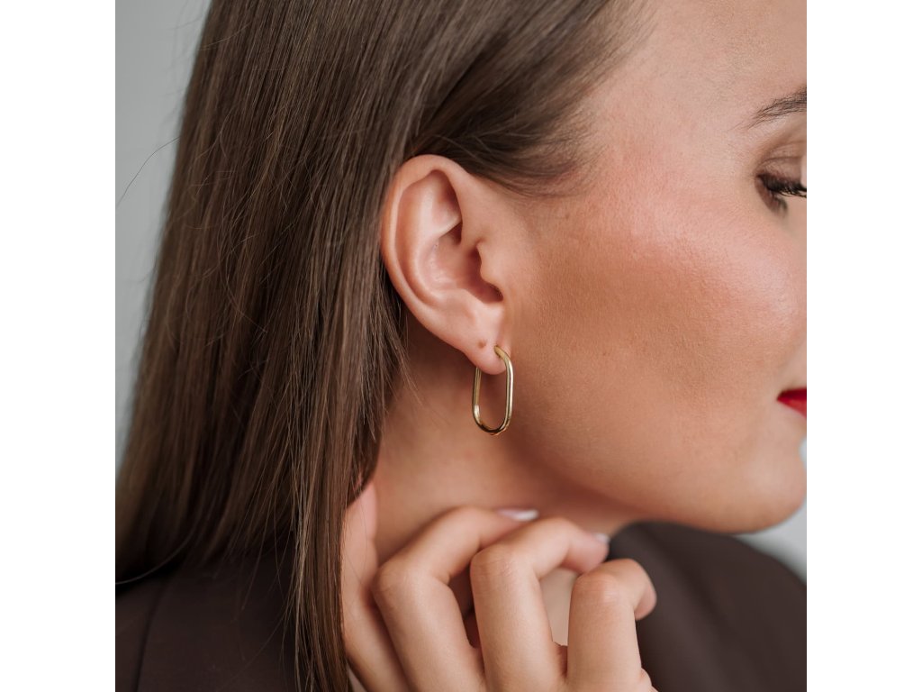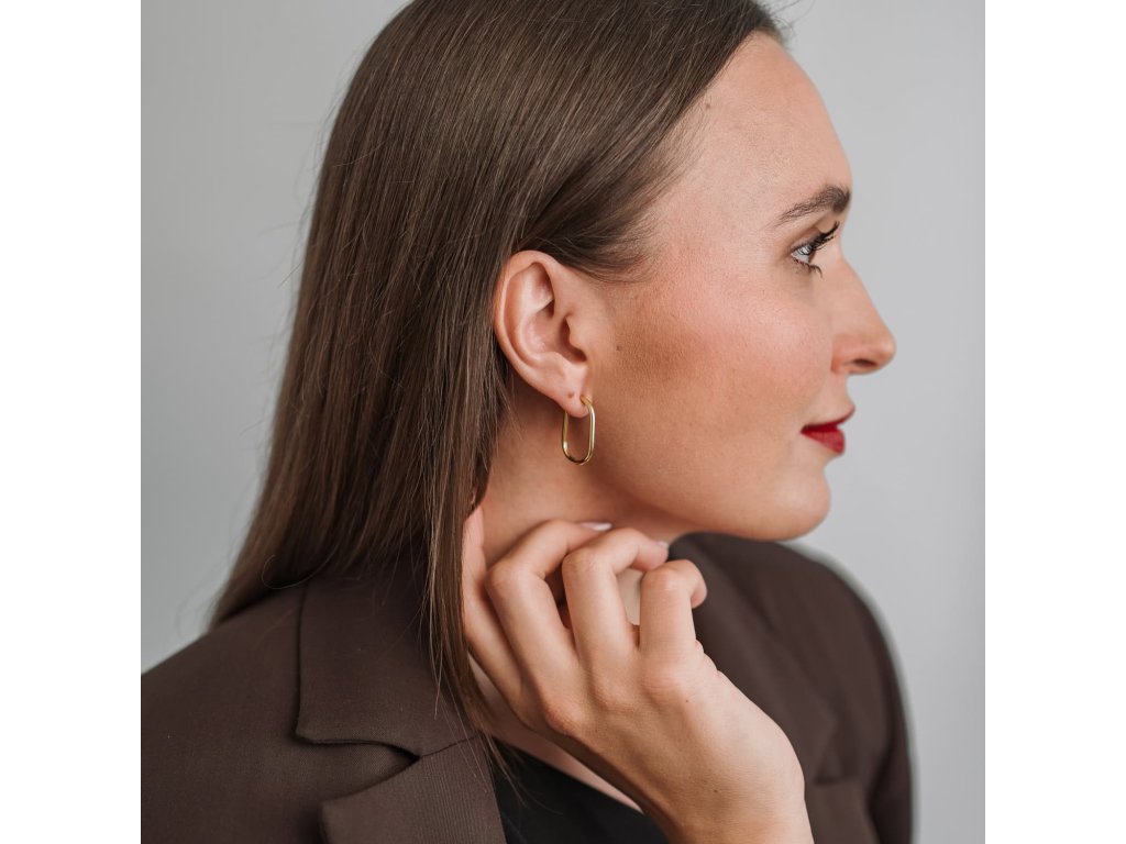 Rhea nejsou náušnice, které se ztratí v davu. Jsou minimalistické svým tvarem, ale zároveň patří mezi výraznější kousky, které upoutají pozornost. Stanou se tím detailem, který okamžitě pozvedne celý tvůj outfit. Oválné linie (25 × 16 mm) působí elegantně, čistě a přitom dostatečně nápadně, aby podtrhly tvůj styl.