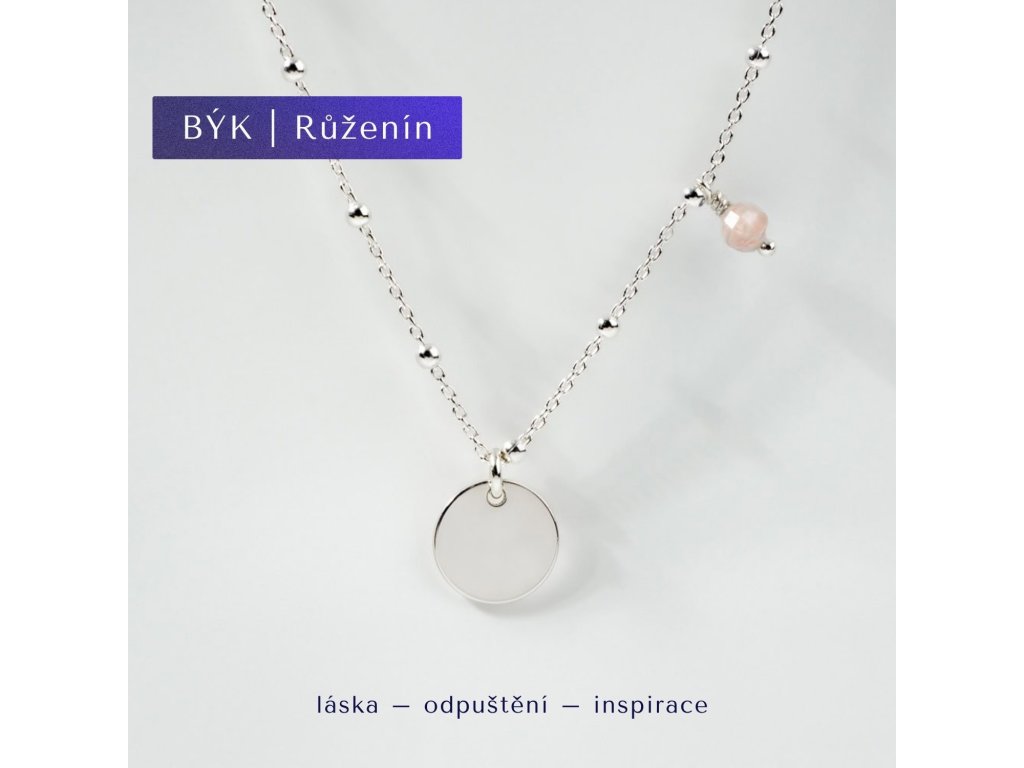 Růženín je symbolem bezpodmínečné universální lásky, krásy a míru. Bude tě učit sebelásce a odpuštění sobě i druhým. Umí zklidňovat emocionální vypětí a traumata. Zvyšuje empatii a citlivost. Ať ti tento náhrdelník otevře srdce každý den o něco více!