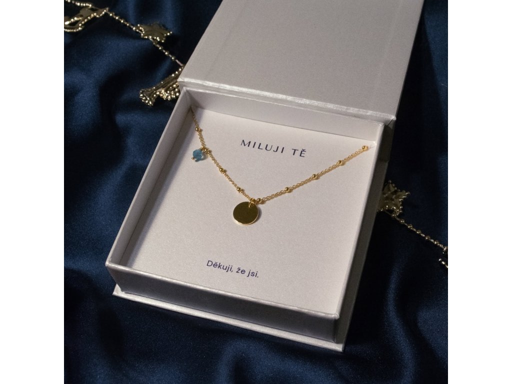 Náhrdelník MILUJI TĚ - přívěsek s kamenem podle znamení Sterlingové a pozlacené stříbro Ag 925/1000
