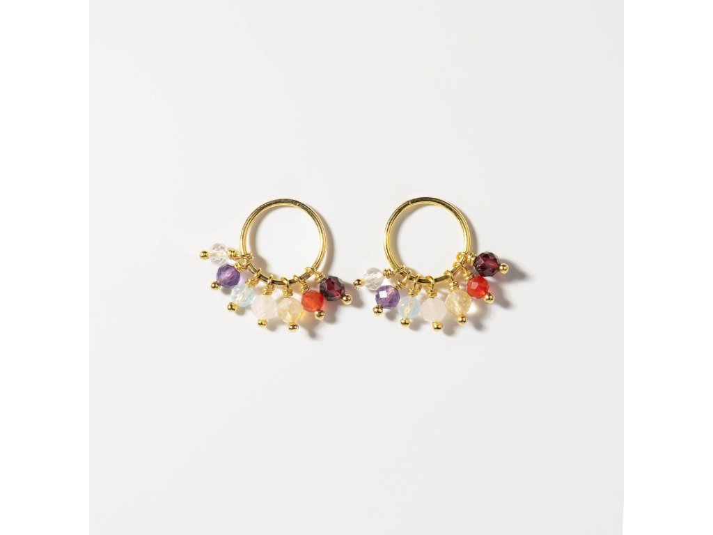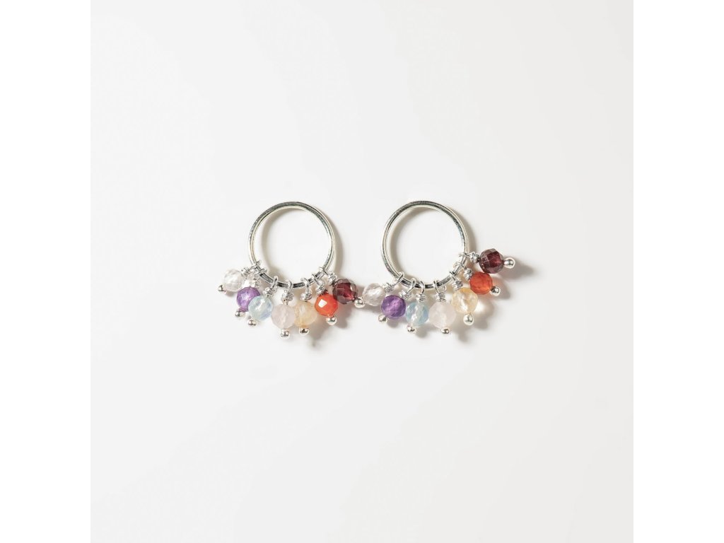 Náušnice Sedm čaker v sobě nesou sedm přírodních kamenů, z nichž každý odpovídá jedné čakře. Jejich barvy ladí s vibracemi jednotlivých center a pomáhají energii volně proudit.